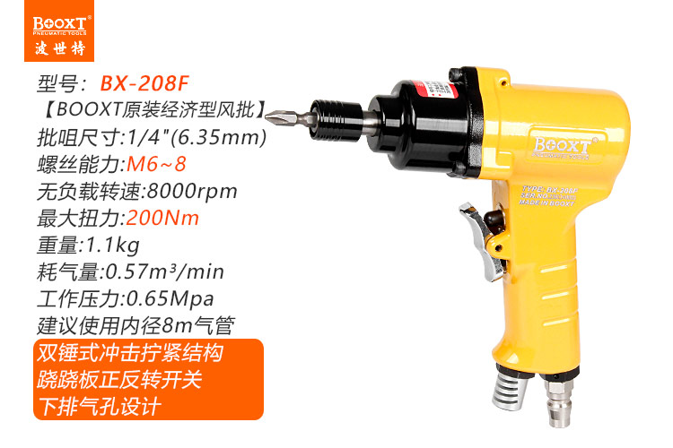 東莞市強勁五金工具有限公司提供臺灣BOOXT波世特品牌氣動工具,大扭力風批BX-208F廠家直銷,首件享特價。咨詢熱線:4008301980