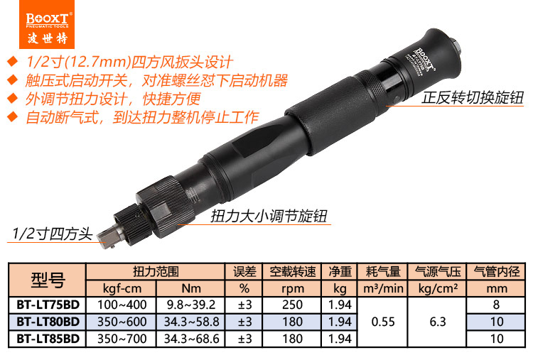 東莞市強勁五金工具有限公司提供臺灣BOOXT波世特品牌氣動工具,可調定扭力氣動扳手BT-LT75BD廠家直銷,首件享特價。咨詢熱線:4008301980