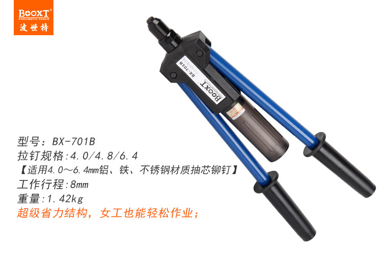東莞市強勁五金工具有限公司提供臺灣BOOXT波世特品牌氣動工具,雙把拉鉚槍BX-701B廠家直銷,首件享特價。咨詢熱線:4008301980