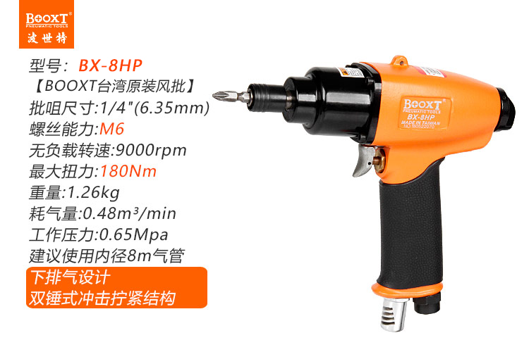 東莞市強勁五金工具有限公司提供臺灣BOOXT波世特品牌氣動工具,氣動螺絲槍BX-8HP廠家直銷,首件享特價。咨詢熱線:4008301980