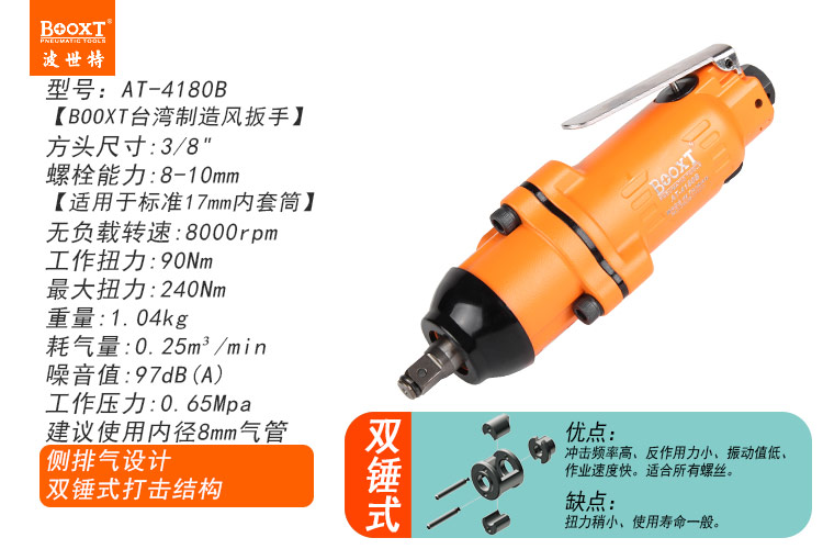 東莞市強勁五金工具有限公司提供臺灣BOOXT波世特品牌氣動工具,小型氣動扳手AT-4180B廠家直銷,首件享特價。咨詢熱線:4008301980