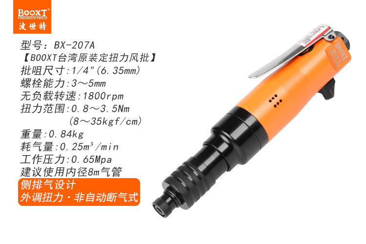 東莞強勁五金工具有限公司提供臺灣BOOXT波世特氣動工具,定扭力氣動螺絲刀BX-207A廠家直銷,首件享特價。咨詢熱線:4008301980