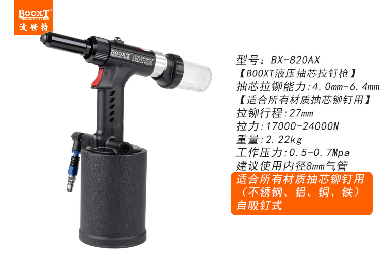 東莞市強(qiáng)勁五金工具有限公司提供臺(tái)灣BOOXT波世特品牌氣動(dòng)工具,自吸釘氣動(dòng)鉚釘槍BX-820AX廠家直銷,首件享特價(jià)。咨詢熱線:4008301980