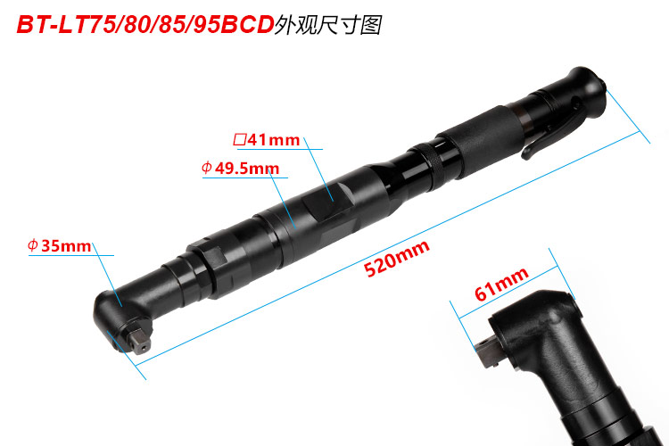 定扭力氣動扳手特點:(重力壓鑄外殼,強度更高不變形,提高耐用度)