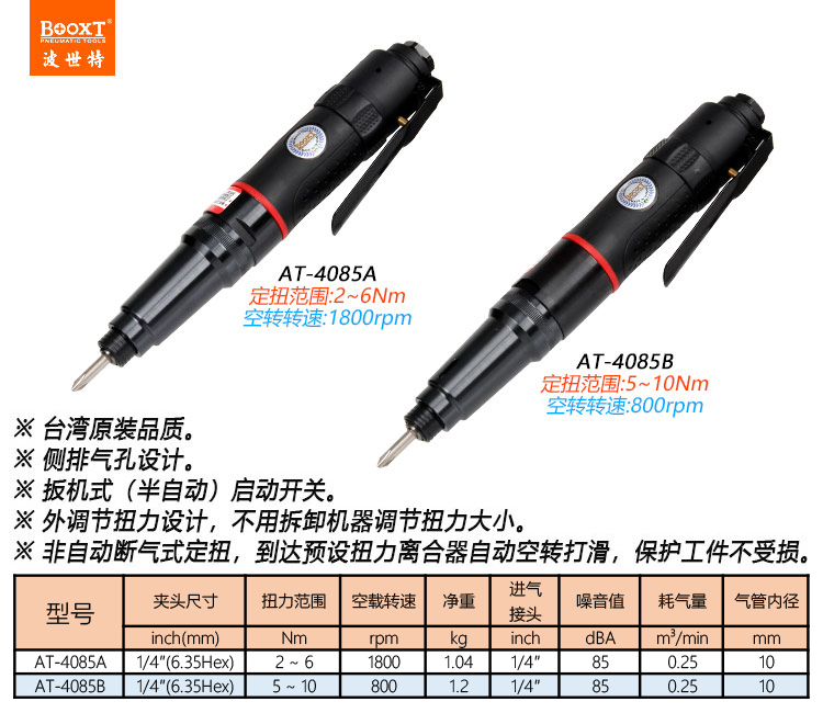 東莞強(qiáng)勁五金工具有限公司提供臺灣BOOXT波世特氣動工具,氣動扭力螺絲刀AT-4085A廠家直銷,首件享特價。咨詢熱線:4008301980