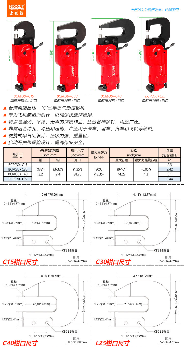東莞市強勁五金工具有限公司提供臺灣BOOXT波世特品牌氣動工具,C式氣動壓鉚槍BCR030+C30廠家直銷,首件享特價。咨詢熱線:4008301980