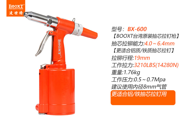 東莞市強勁五金工具有限公司提供臺灣BOOXT波世特品牌氣動工具,氣動拉鉚槍BX-600廠家直銷,首件享特價。咨詢熱線:4008301980